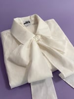 Ivory flower button bow blouse
