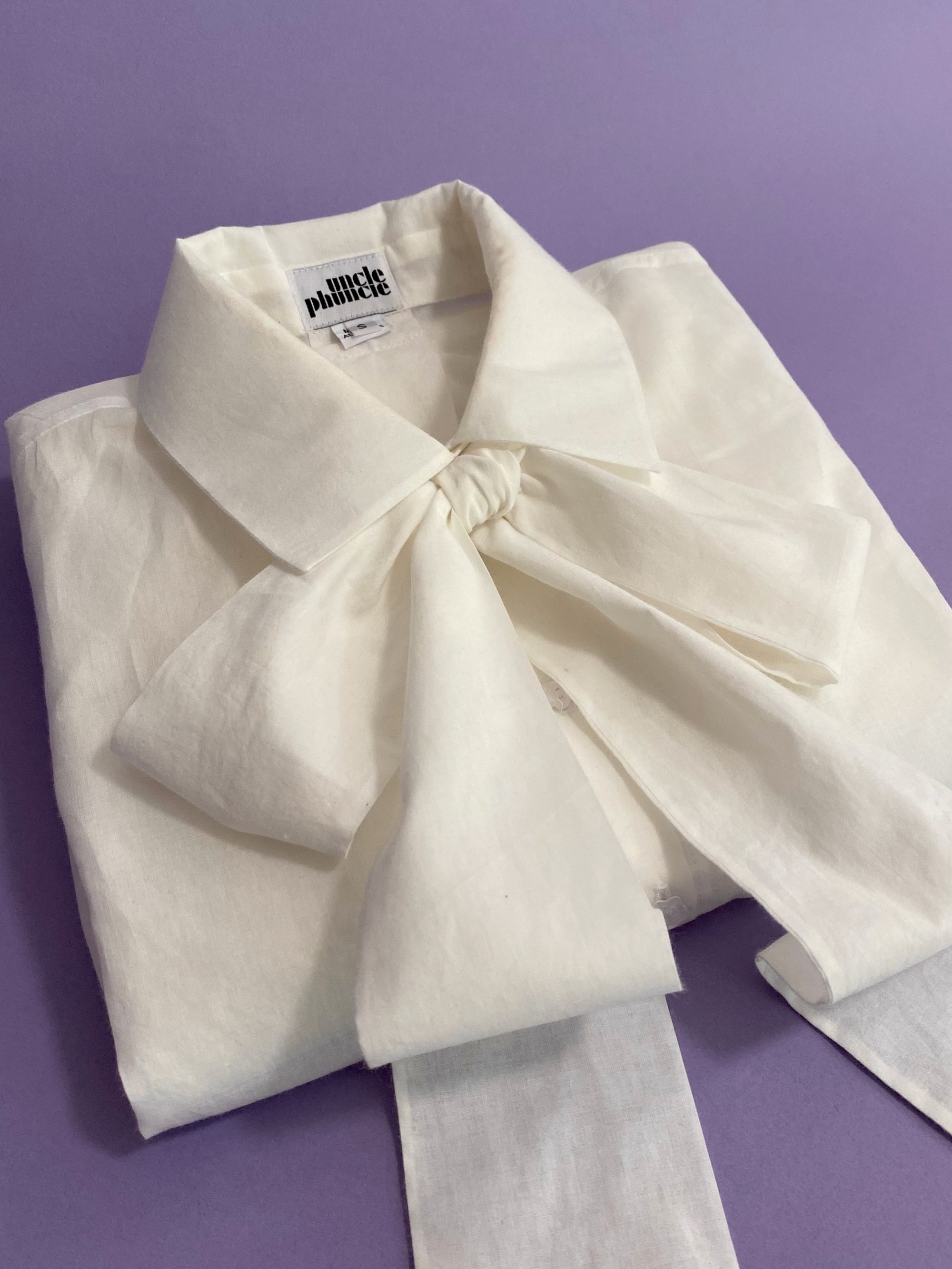 The Phuncle Bow Blouse is a classic blouse wardrobe staple. Made from super soft and fine cotton voile, it's delightfully light and perfect for layering. So soft, so delicious. OH and did I mention it comes with a matching bow? It totally comes with a matching bow. The bow blouse is perfect for tucking into your favourite skirts or layering under cute dresses for the perfect outfit. It layers perfectly under the Phuncle merino long sleeved cropped T and this ivory shade goes with basically everything (so handy)