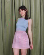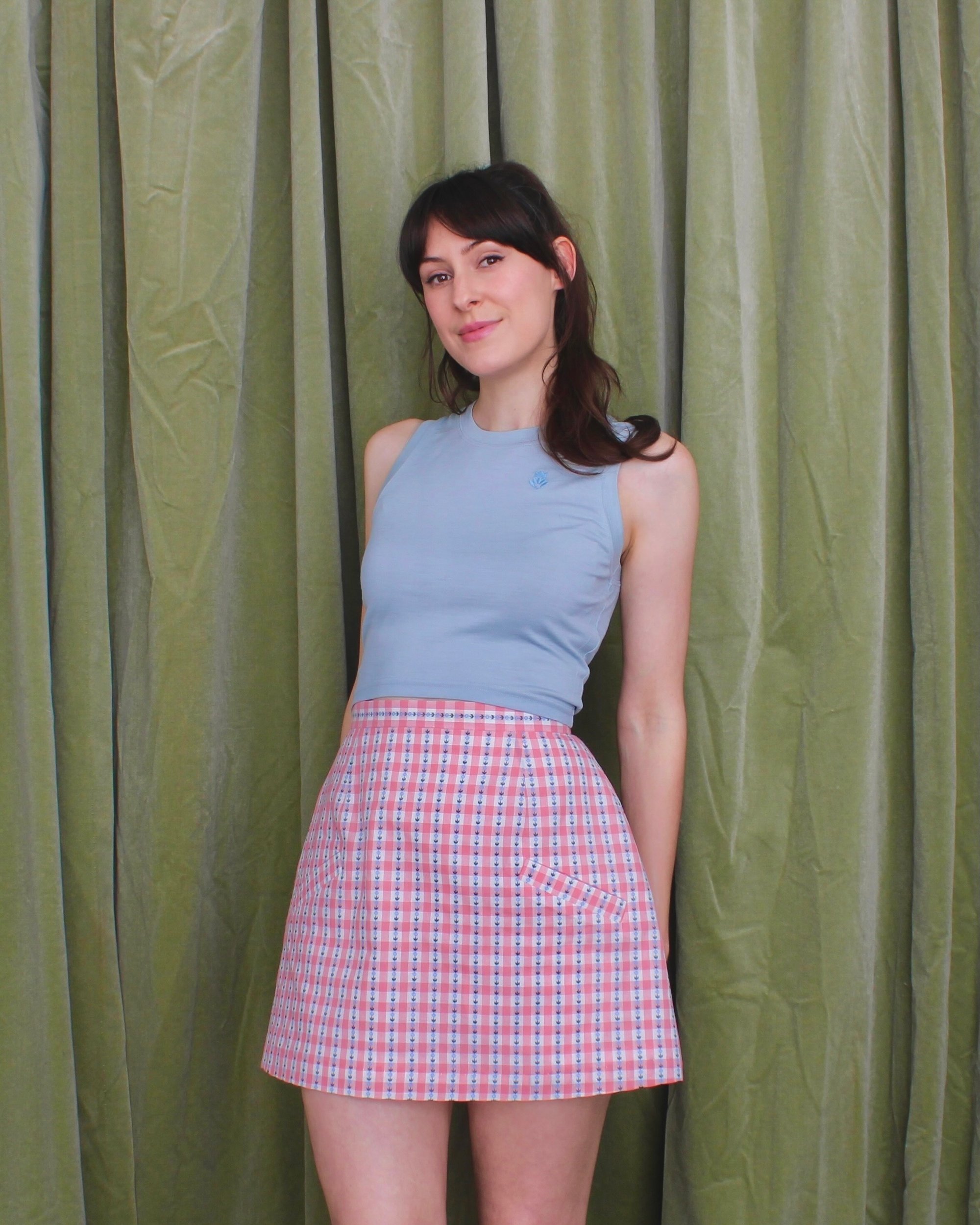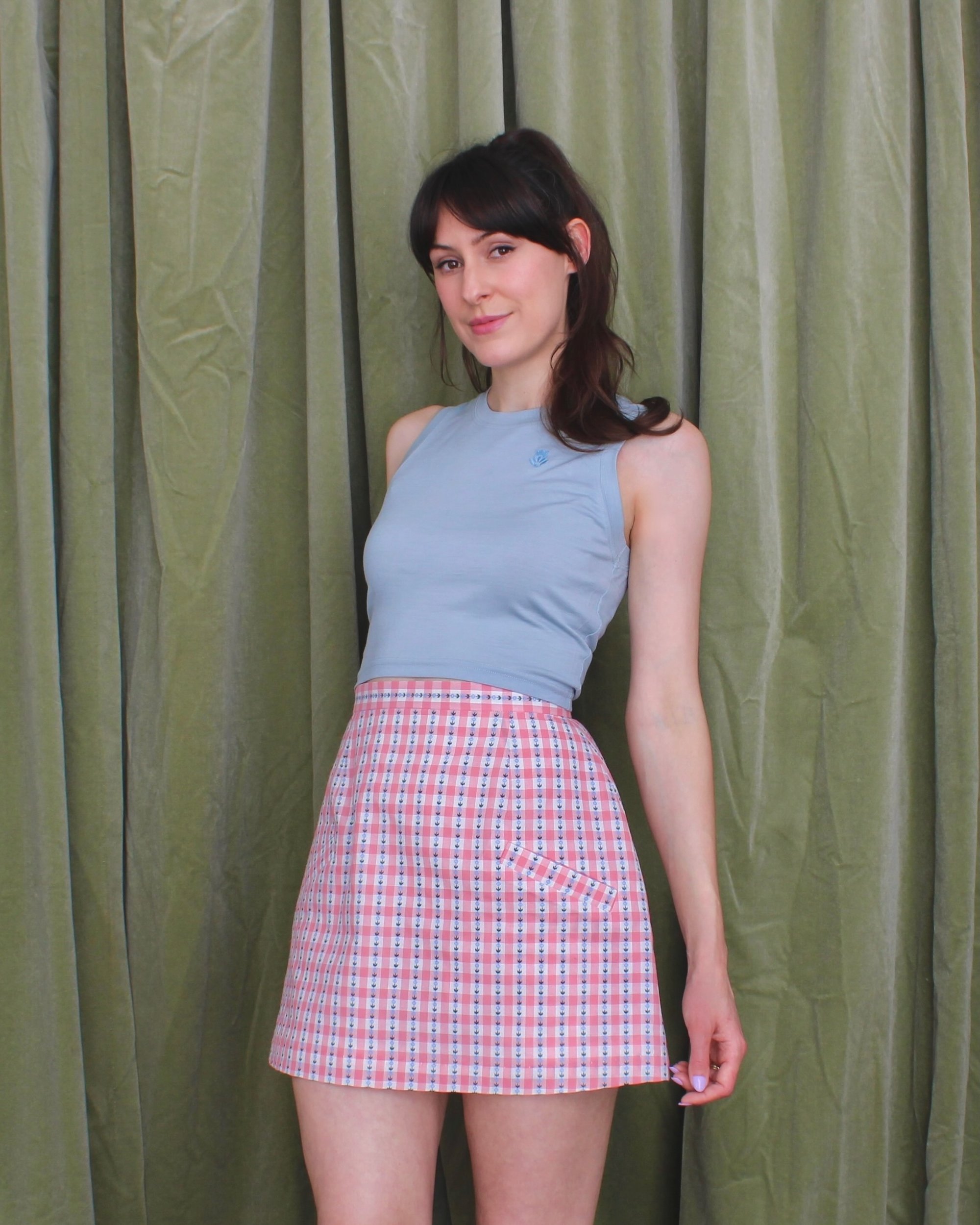 If you're new to slow fashion or are not sure how to build your wardrobe, a classic mini skirt is a great place to start! This mini skirt is made from glorious pink and white deadstock check fabric from Korea. The mini skirt features two pockets for keeping your secrets and treasures secure and stylish (yep, they're real pockets and they're spectacular)